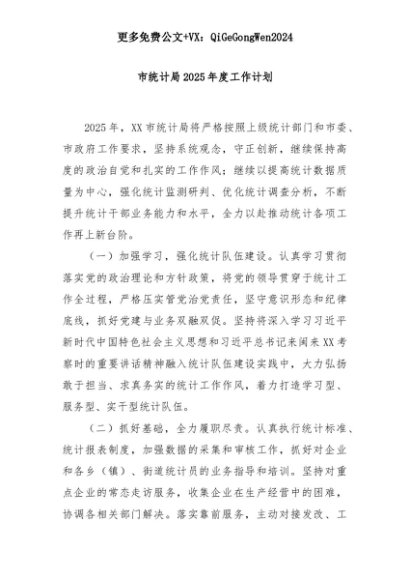【七哥公文】2025年:市统计局2025年度工作计划+更多免费公文+VX:QiGeGongWen2024+更多免费公文+VX:QiGeGongWen2024