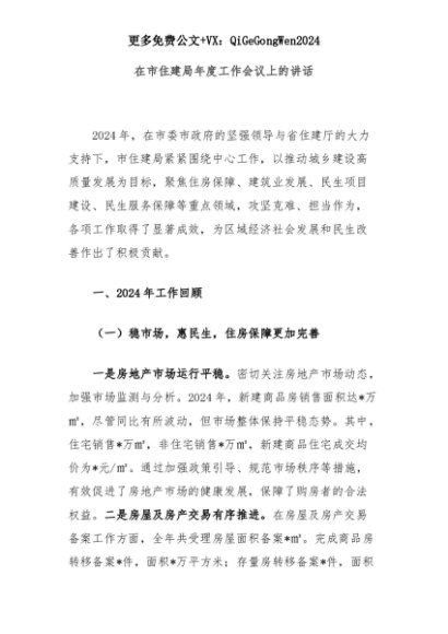 【七哥公文】2025年:在市住建局年度工作会议上的讲话+更多免费公文+VX:QiGeGongWen2024+更多免费公文+VX:QiGeGongWen2024