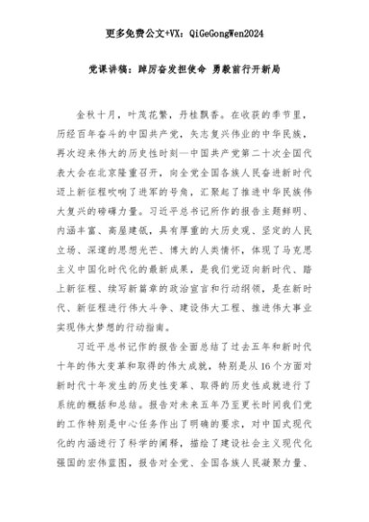 【七哥公文】2025年:党课讲稿:踔厉奋发担使命 勇毅前行开新局+更多免费公文+VX:QiGeGongWen2024+更多免费公文+VX:QiGeGongWen2024