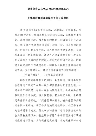 【七哥公文】2025年:乡镇履职事项清单编制工作经验材料+更多免费公文+VX:QiGeGongWen2024+更多免费公文+VX:QiGeGongWen2024