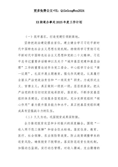 【七哥公文】2025年:XX街道办事处2025年度工作计划+更多免费公文+VX:QiGeGongWen2024+更多免费公文+VX:QiGeGongWen2024