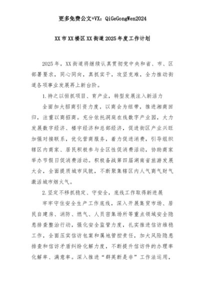 【七哥公文】2025年:XX市XX楼区XX街道2025年度工作计划+更多免费公文+VX:QiGeGongWen2024+更多免费公文+VX:QiGeGongWen2024