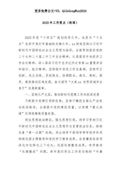 【七哥公文】2025年:2025年工作要点(街道)+更多免费公文+VX:QiGeGongWen2024+更多免费公文+VX:QiGeGongWen2024
