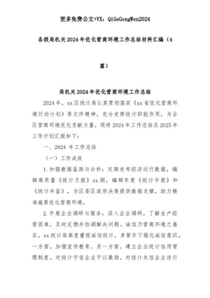 【七哥公文】2025年:(4篇)各级局机关2024年优化营商环境工作总结材料汇编+更多免费公文+VX:QiGeGongWen2024+更多免费公文+VX:QiGeGongWen2024