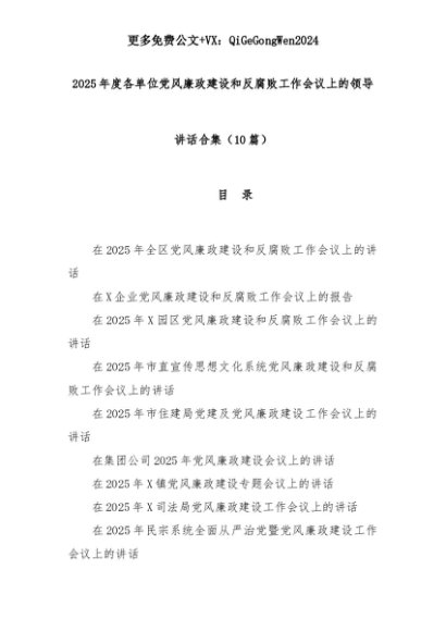 【七哥公文】2025年:(10篇)2025年度各单位党风廉政建设和反腐败工作会议上的领导讲话合集+更多免费公文+VX:QiGeGongWen2024+更多免费公文+VX:QiGeGongWen2024