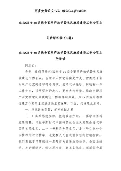 【七哥公文】2025年:(3篇)在2025年xx系统全面从严治党暨党风廉政建设工作会议上的讲话汇编+更多免费公文+VX:QiGeGongWen2024+更多免费公文+VX:QiGeGongWen2024
