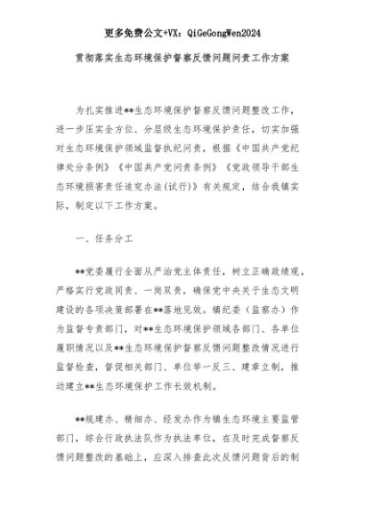 【七哥公文】2025年:贯彻落实生态环境保护督察反馈问题问责工作方案+更多免费公文+VX:QiGeGongWen2024+更多免费公文+VX:QiGeGongWen2024