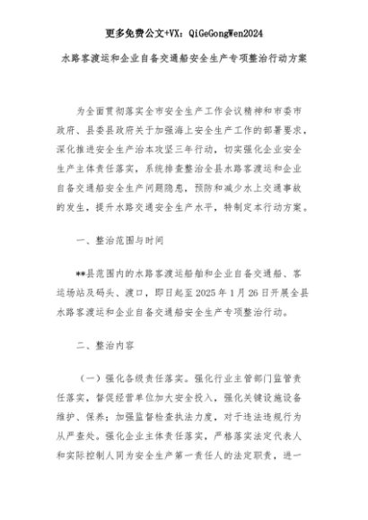 【七哥公文】2025年:水路客渡运和企业自备交通船安全生产专项整治行动方案+更多免费公文+VX:QiGeGongWen2024+更多免费公文+VX:QiGeGongWen2024