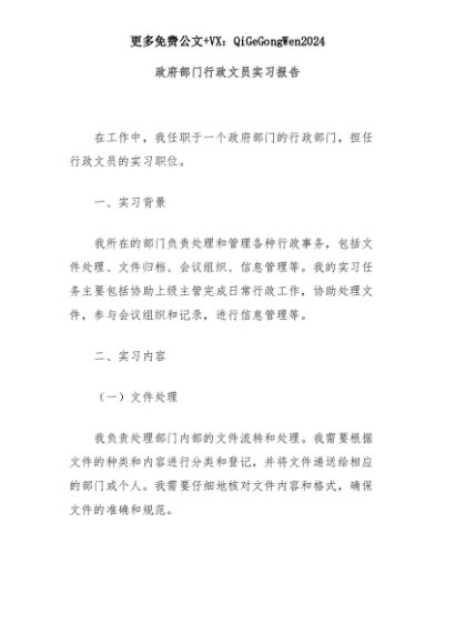 【七哥公文】2025年:政府部门行政文员实习报告+更多免费公文+VX:QiGeGongWen2024+更多免费公文+VX:QiGeGongWen2024