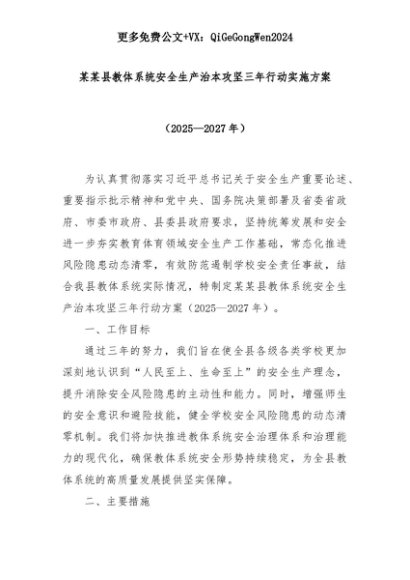 【七哥公文】2025年:某某县教体系统安全生产治本攻坚三年行动实施方案(2025—2027年)+更多免费公文+VX:QiGeGongWen2024+更多免费公文+VX:QiGeGongWen2024