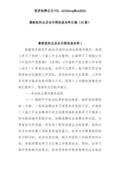 【七哥公文】2025年:(30篇)最新组织生活会对照检查材料汇编+更多免费公文+VX:QiGeGongWen2024+更多免费公文+VX:QiGeGongWen2024