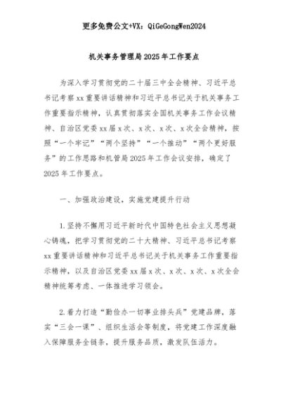 【七哥公文】2025年:机关事务管理局2025年工作要点+更多免费公文+VX:QiGeGongWen2024+更多免费公文+VX:QiGeGongWen2024