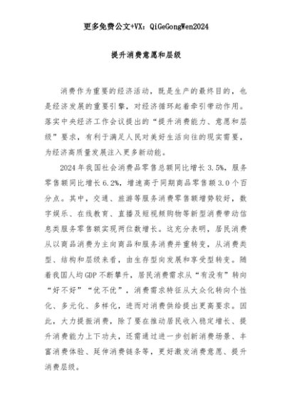 【七哥公文】2025年:提升消费意愿和层级+更多免费公文+VX:QiGeGongWen2024+更多免费公文+VX:QiGeGongWen2024