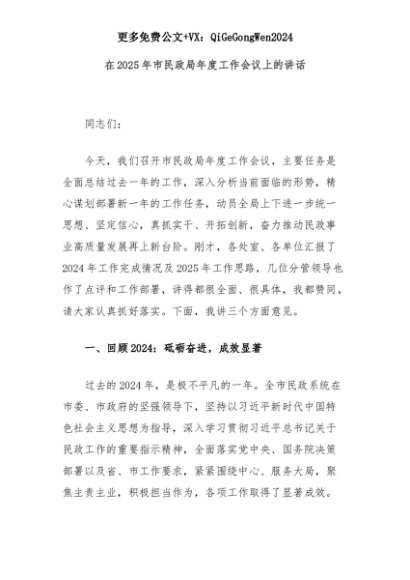 【七哥公文】2025年:在2025年市民政局年度工作会议上的讲话+更多免费公文+VX:QiGeGongWen2024+更多免费公文+VX:QiGeGongWen2024