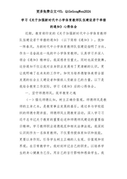 【七哥公文】2025年:学习《关于加强新时代中小学体育教师队伍建设若干举措的通知》心得体会+更多免费公文+VX:QiGeGongWen2024+更多免费公文+VX:QiGeGongWen2024