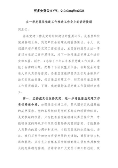 【七哥公文】2025年:在一季度基层党建工作推进工作会上的讲话提纲+更多免费公文+VX:QiGeGongWen2024+更多免费公文+VX:QiGeGongWen2024