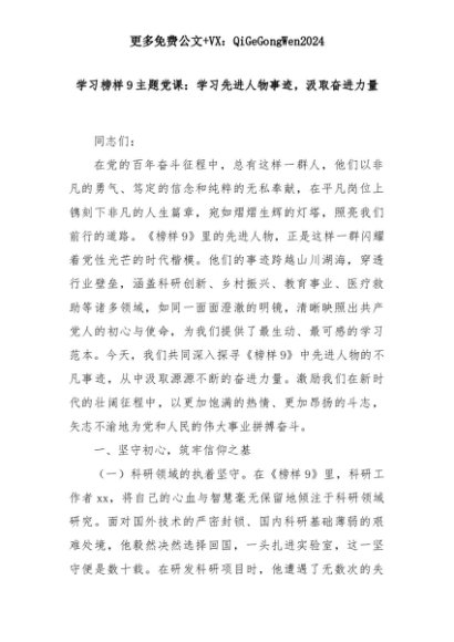 【七哥公文】2025年:学习榜样9主题党课:学习先进人物事迹,汲取奋进力量+更多免费公文+VX:QiGeGongWen2024+更多免费公文+VX:QiGeGongWen2024