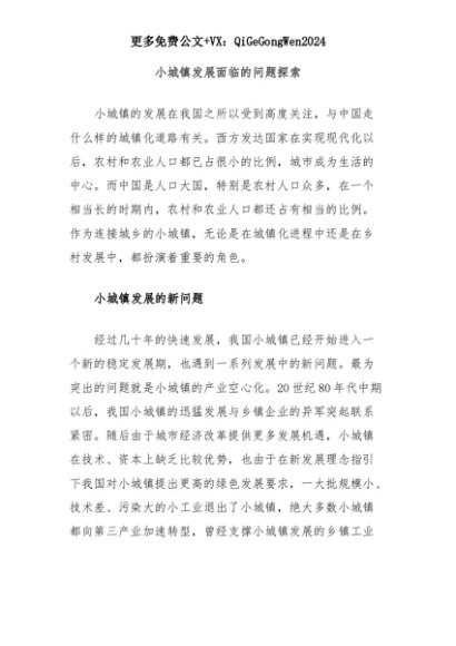 【七哥公文】2025年:小城镇发展面临的问题探索+更多免费公文+VX:QiGeGongWen2024+更多免费公文+VX:QiGeGongWen2024