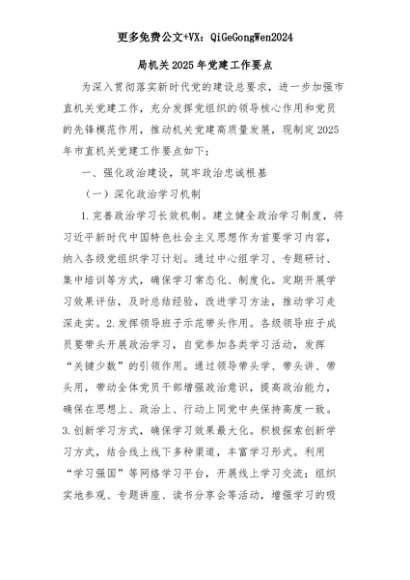 【七哥公文】2025年:局机关2025年党建工作要点+更多免费公文+VX:QiGeGongWen2024+更多免费公文+VX:QiGeGongWen2024