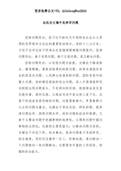 【七哥公文】2025年:在机关文稿中怎样写问题+更多免费公文+VX:QiGeGongWen2024+更多免费公文+VX:QiGeGongWen2024