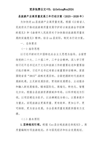 【七哥公文】2025年:县旅游产业高质量发展三年行动方案(2025—2028年)+更多免费公文+VX:QiGeGongWen2024+更多免费公文+VX:QiGeGongWen2024