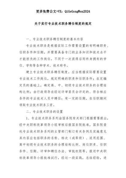 【七哥公文】2025年:关于实行专业技术职务聘任制度的规定+更多免费公文+VX:QiGeGongWen2024+更多免费公文+VX:QiGeGongWen2024