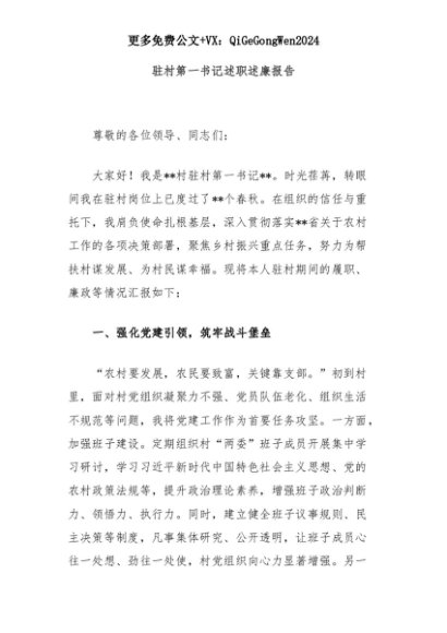 【七哥公文】2025年:驻村第一书记述职述廉报告+更多免费公文+VX:QiGeGongWen2024+更多免费公文+VX:QiGeGongWen2024