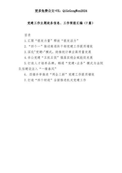 【七哥公文】2025年:(7篇)党建工作主题政务信息、工作简报汇编+更多免费公文+VX:QiGeGongWen2024+更多免费公文+VX:QiGeGongWen2024
