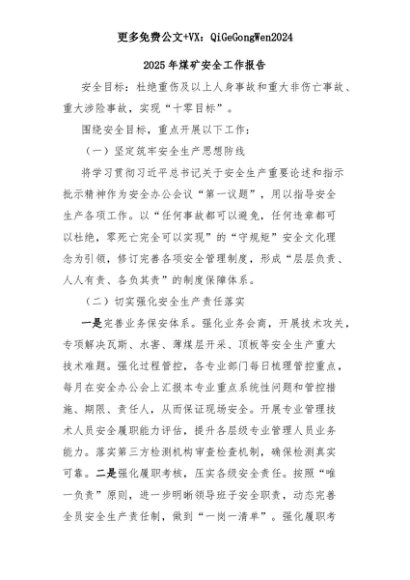 【七哥公文】2025年:2025年煤矿安全工作报告+更多免费公文+VX:QiGeGongWen2024+更多免费公文+VX:QiGeGongWen2024