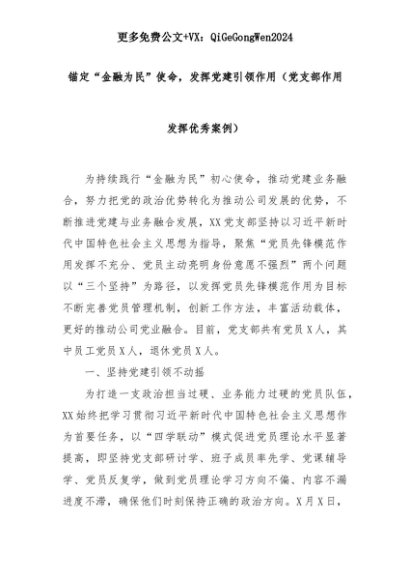 【七哥公文】2025年:锚定“金融为民”使命,发挥党建引领作用(党支部作用发挥优秀案例)+更多免费公文+VX:QiGeGongWen2024+更多免费公文+VX:QiGeGongWen2024