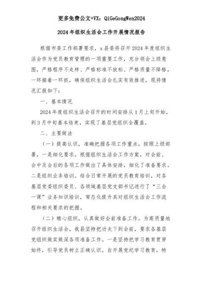 【七哥公文】2025年:2024年组织生活会工作开展情况报告+更多免费公文+VX:QiGeGongWen2024+更多免费公文+VX:QiGeGongWen2024