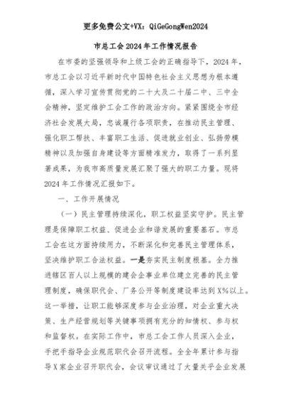 【七哥公文】2025年:市总工会2024年工作情况报告+更多免费公文+VX:QiGeGongWen2024+更多免费公文+VX:QiGeGongWen2024