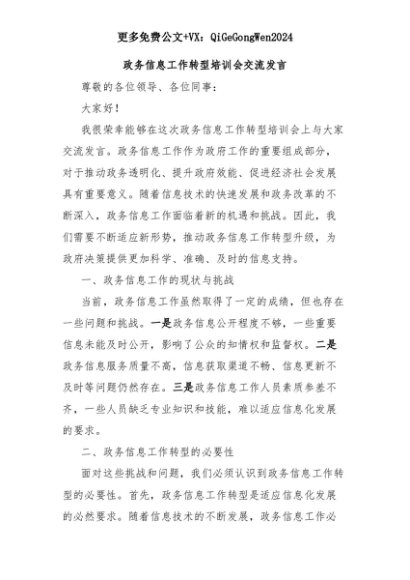 【七哥公文】2025年:政务信息工作转型培训会交流发言+更多免费公文+VX:QiGeGongWen2024+更多免费公文+VX:QiGeGongWen2024
