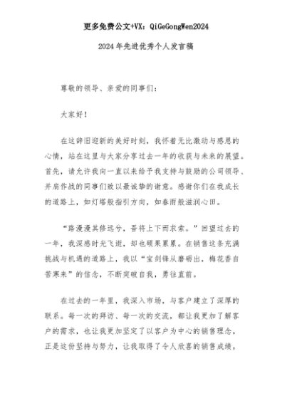 【七哥公文】2025年:2024年先进优秀个人发言稿+更多免费公文+VX:QiGeGongWen2024+更多免费公文+VX:QiGeGongWen2024
