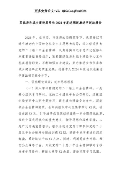 【七哥公文】2025年:某住房和城乡建设局局长2024年度述职述廉述学述法报告+更多免费公文+VX:QiGeGongWen2024+更多免费公文+VX:QiGeGongWen2024