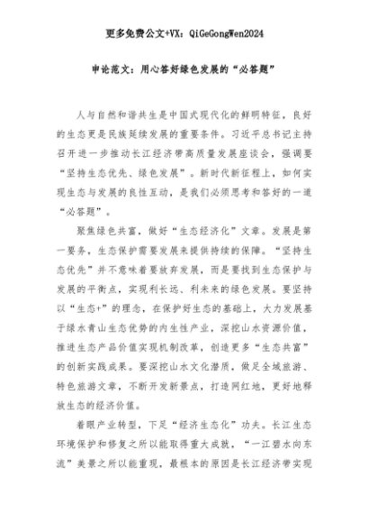 【七哥公文】2025年:申论范文:用心答好绿色发展的“必答题”+更多免费公文+VX:QiGeGongWen2024+更多免费公文+VX:QiGeGongWen2024