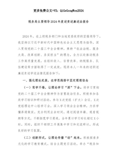 【七哥公文】2025年:税务局主要领导2024年度述责述廉述法报告+更多免费公文+VX:QiGeGongWen2024+更多免费公文+VX:QiGeGongWen2024