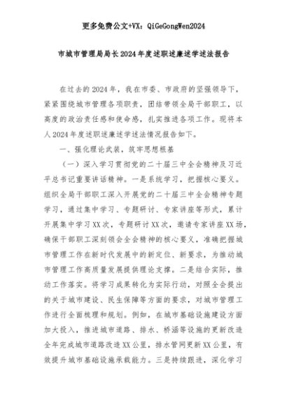 【七哥公文】2025年:市城市管理局局长2024年度述职述廉述学述法报告+更多免费公文+VX:QiGeGongWen2024+更多免费公文+VX:QiGeGongWen2024