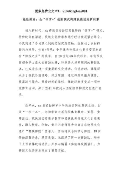 【七哥公文】2025年:经验做法:县“体育+”创新模式构建民族团结新引擎+更多免费公文+VX:QiGeGongWen2024+更多免费公文+VX:QiGeGongWen2024