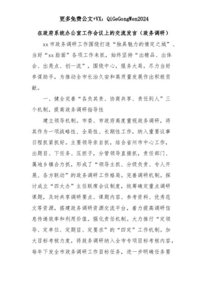 【七哥公文】2025年:在政府系统办公室工作会议上的交流发言(政务调研)+更多免费公文+VX:QiGeGongWen2024+更多免费公文+VX:QiGeGongWen2024