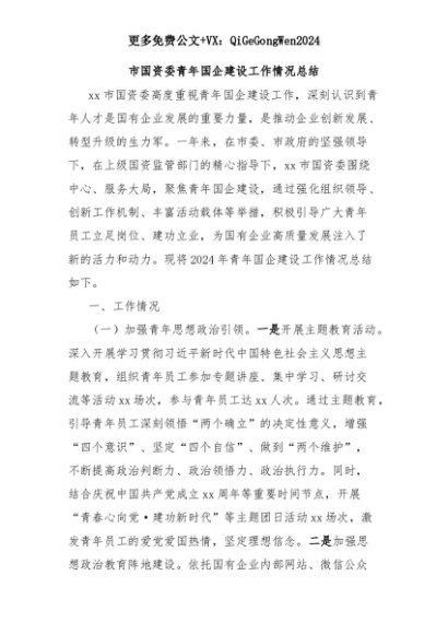 【七哥公文】2025年:市国资委青年国企建设工作情况总结+更多免费公文+VX:QiGeGongWen2024+更多免费公文+VX:QiGeGongWen2024