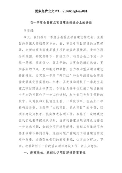 【七哥公文】2025年:在一季度全县重点项目建设推进会上的讲话+更多免费公文+VX:QiGeGongWen2024+更多免费公文+VX:QiGeGongWen2024