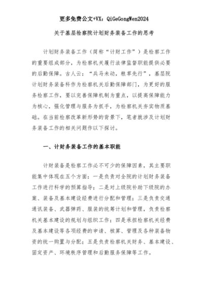 【七哥公文】2025年:关于基层检察院计划财务装备工作的思考+更多免费公文+VX:QiGeGongWen2024+更多免费公文+VX:QiGeGongWen2024
