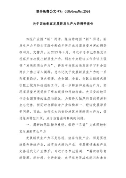 【七哥公文】2025年:关于因地制宜发展新质生产力的调研报告+更多免费公文+VX:QiGeGongWen2024+更多免费公文+VX:QiGeGongWen2024