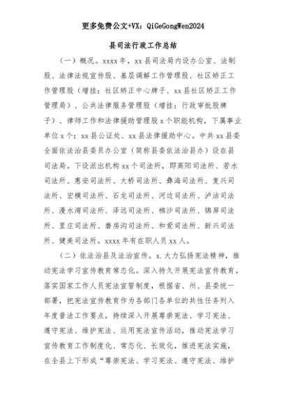 【七哥公文】2025年:县司法行政工作总结+更多免费公文+VX:QiGeGongWen2024+更多免费公文+VX:QiGeGongWen2024