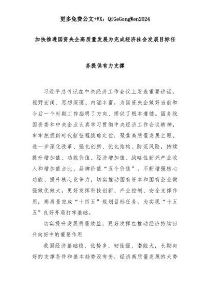【七哥公文】2025年:加快推进国资央企高质量发展为完成经济社会发展目标任务提供有力支撑+更多免费公文+VX:QiGeGongWen2024+更多免费公文+VX:QiGeGongWen2024