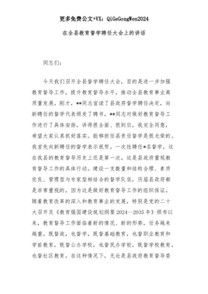 【七哥公文】2025年:在全县教育督学聘任大会上的讲话+更多免费公文+VX:QiGeGongWen2024+更多免费公文+VX:QiGeGongWen2024