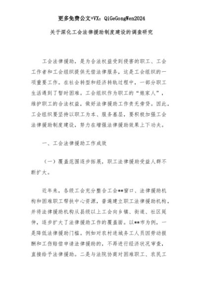 【七哥公文】2025年:关于深化工会法律援助制度建设的调查研究+更多免费公文+VX:QiGeGongWen2024+更多免费公文+VX:QiGeGongWen2024