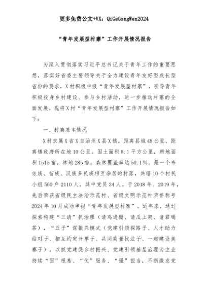 【七哥公文】2025年:“青年发展型村寨”工作开展情况报告+更多免费公文+VX:QiGeGongWen2024+更多免费公文+VX:QiGeGongWen2024