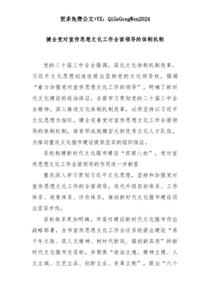 【七哥公文】2025年:健全党对宣传思想文化工作全面领导的体制机制+更多免费公文+VX:QiGeGongWen2024+更多免费公文+VX:QiGeGongWen2024